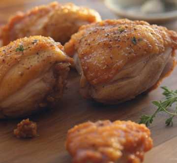1. Pat chicken thighs dry and mix with baking powder and seasonings.